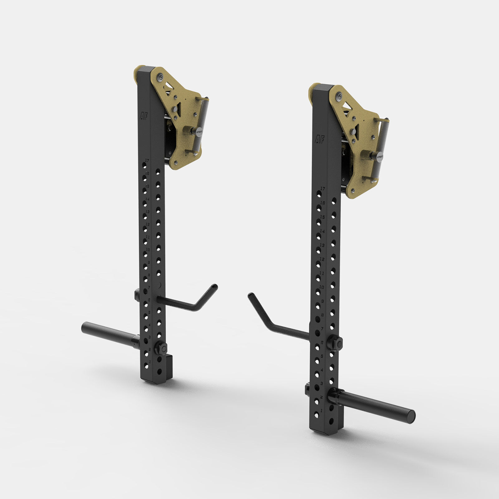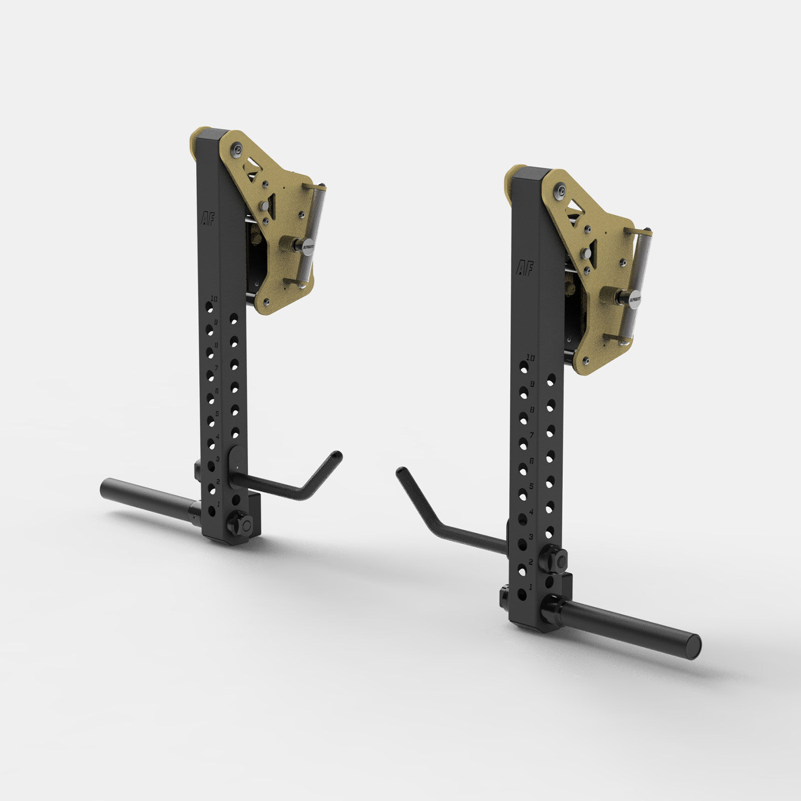 The AlphaFit Rig Mounted Jammer Arm Handle Pair with M24 Retaining Nut mounts directly onto AlphaFit Jammer Arms, giving athletes additional grip options for a wide range of pressing and pulling movements. The curved handle design allows for multiple hand positions, helping users find comfortable and effective grip placement during training.